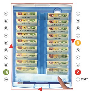 Schiebe Fach 1 auf Position 20, Fach 2 auf Position 1 usw. bis Fach 20 wieder frei ist und die Vokabeln vom Vortag im